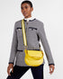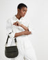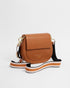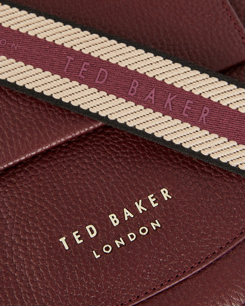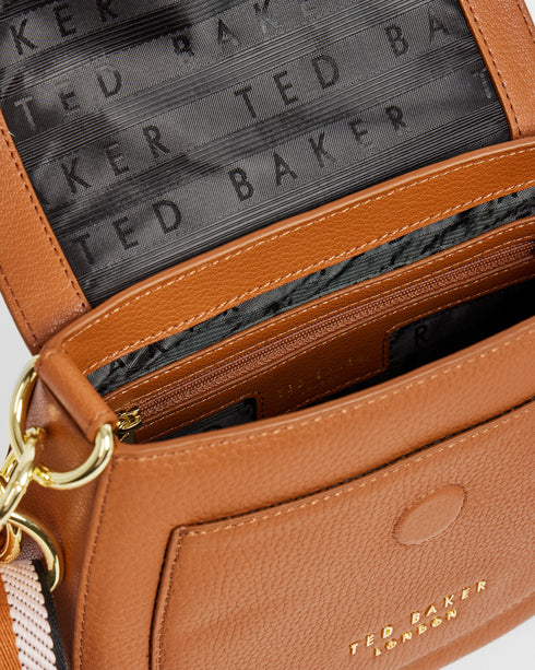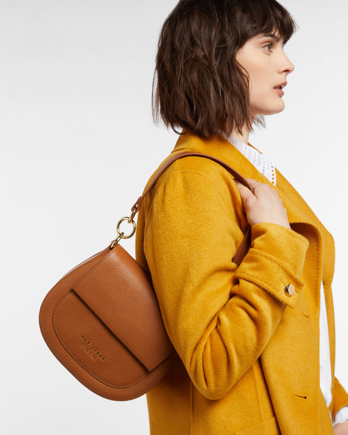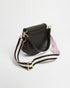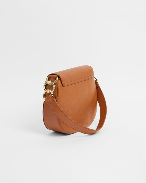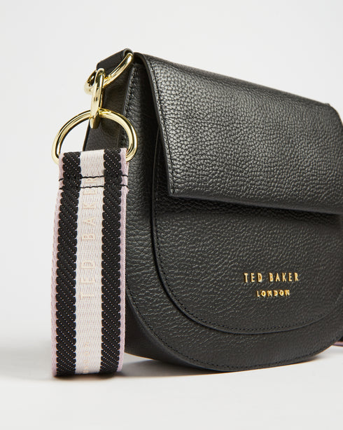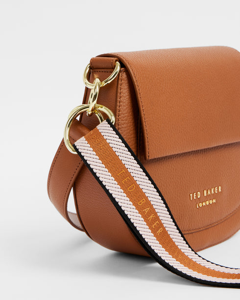 Compact yet spacious, AMALI has it all. In a rounded shape for a unique edge, this leather cross body bag is easily sealed with a magnetic fastening, and can also be adapted thanks to the removable striped webbing shoulder strap. This piece is made of certified recycled polyester. Using recycled polyester helps divert plastic from ending in landfills.